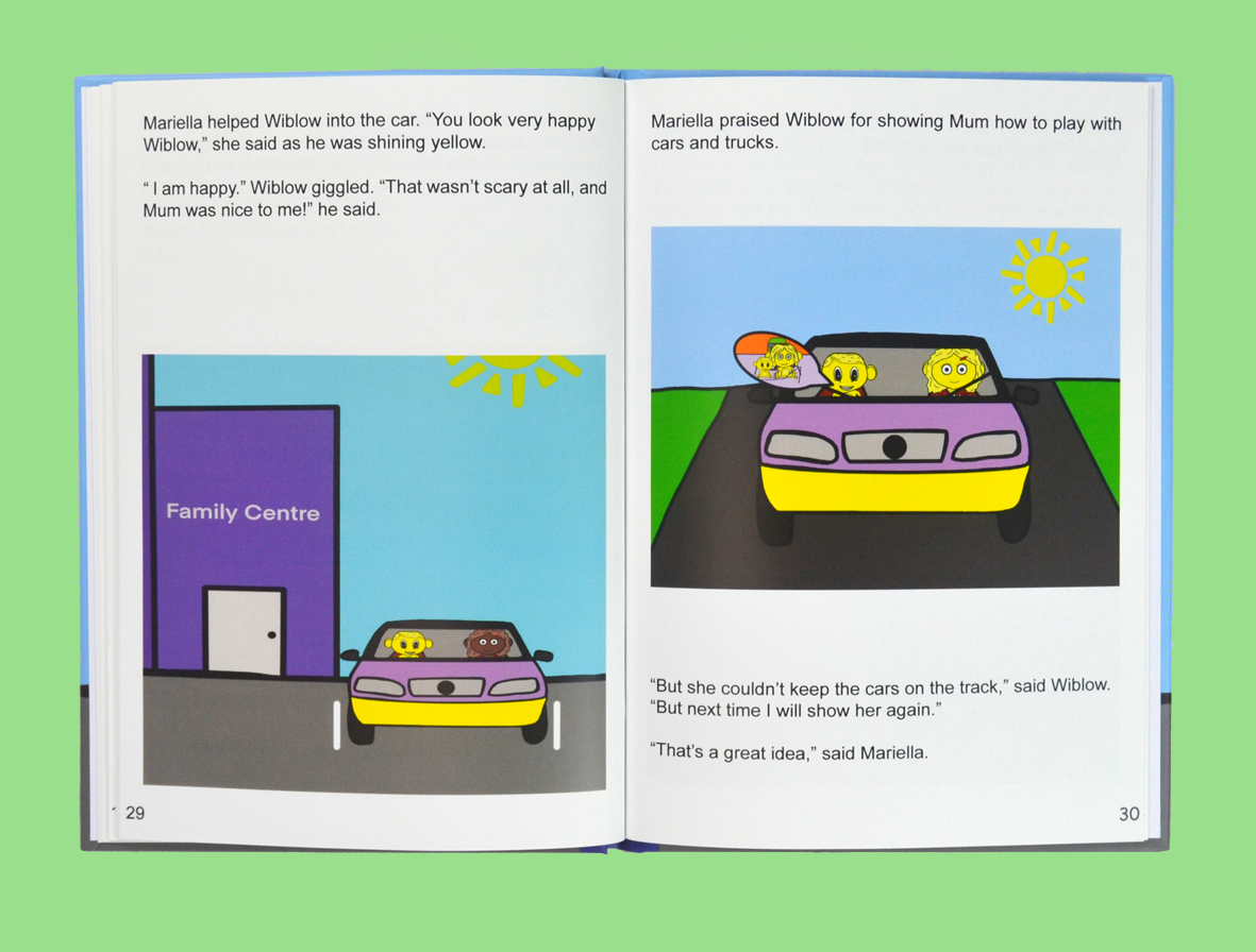 Wiblow lives with the Chickle family. Mariella, his social worker, arranges for him to have a visit with his Mum in the Family Centre. At first, he worries that he will have to go home with his mum, as he likes living with the Chickle family for now. But Mariella reassures him that he will stay living with the Chickles for a bit longer and can see his mum in the Family Centre. Although worried at first, Wiblow enjoys his family time with Mum, and Mum enjoys Family Time too!